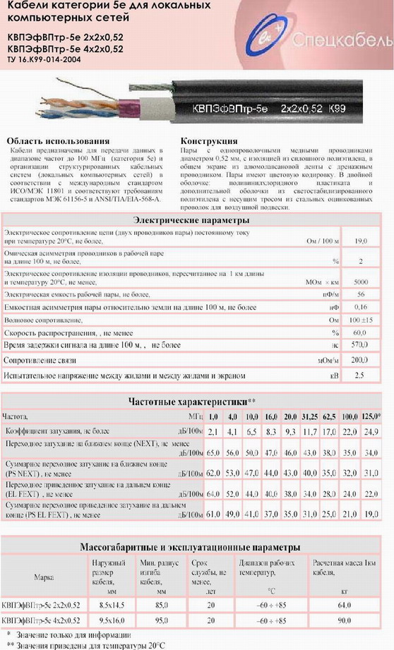 ![]() Описание кабеля! http://www.tdcable.ru/pdf/2/kvpefvptr-5e.pdf |