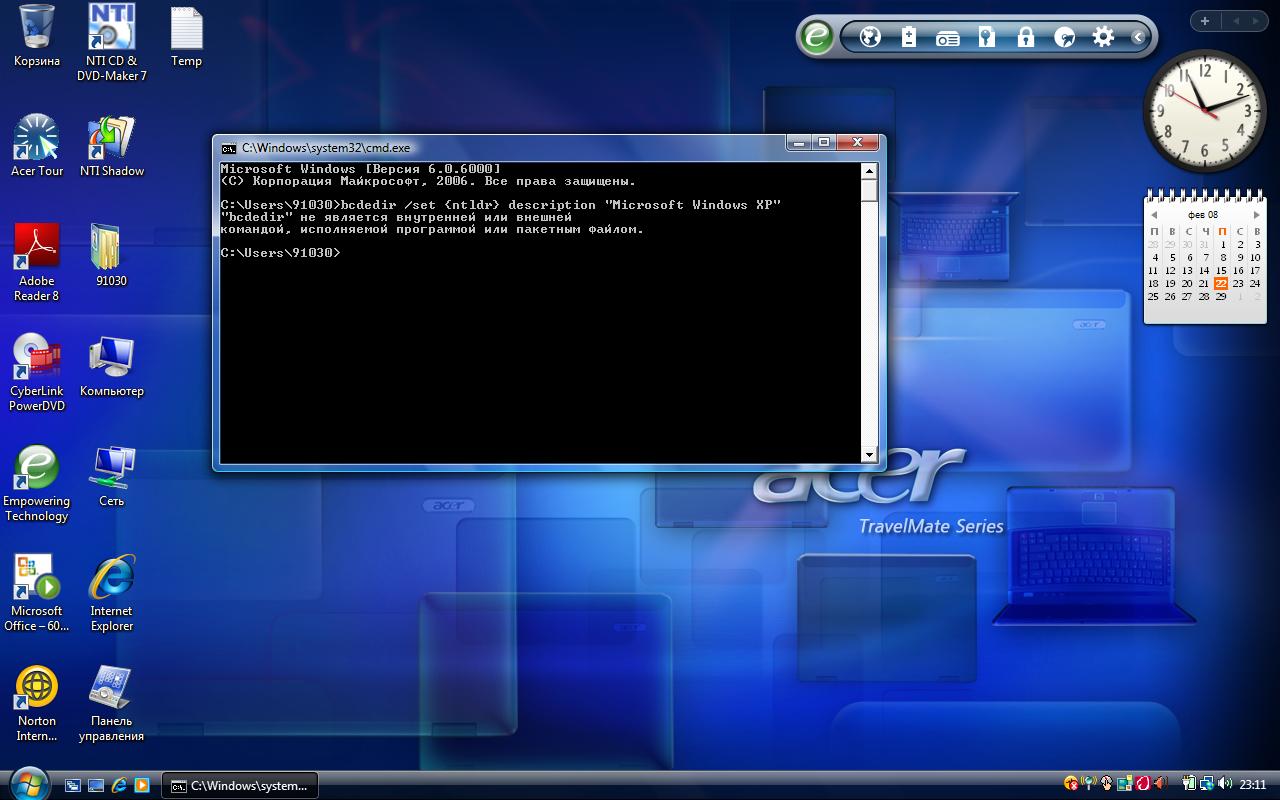 Профиль | Сайт | Отправить PM | Цитировать мда... bcdedir уж конечно не является ни внутренней ни внешней командой, в отличие от bcdedit