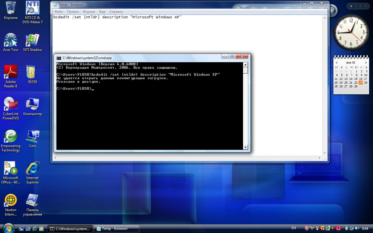 Установка - [решено] Восстановление загрузчика Windows Vista после установки Windows XP (архив)