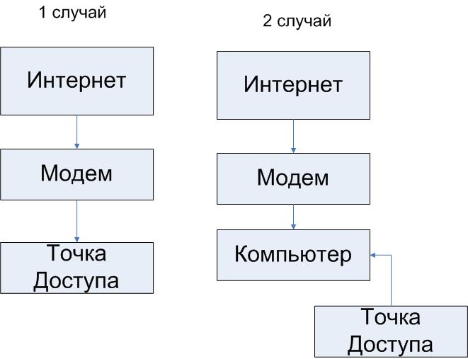 Есть адсл модем D-Link DSL-2300U и точка доступа Level one wap-0003 их надо настроить как нибудь что бы работали) провайдер кстати стрим что делал 1)Втыкал модем в точку получалось но тока на одном компе остальные не могли получить ip адресс 2)Втыкал модем в комп и точку в комп и из этого не получилось нечего хорошего( Хочу чтобы модем был воткнут в точку доступа и остальные компьютеры подключались к точке доступа и на них был интернет Посоветуйте хоть что нить дельное ото достали дома с вопросами когда интернет будет у меня на компе и т.д.( новичок схема убогая наверное даже не надо было делать |