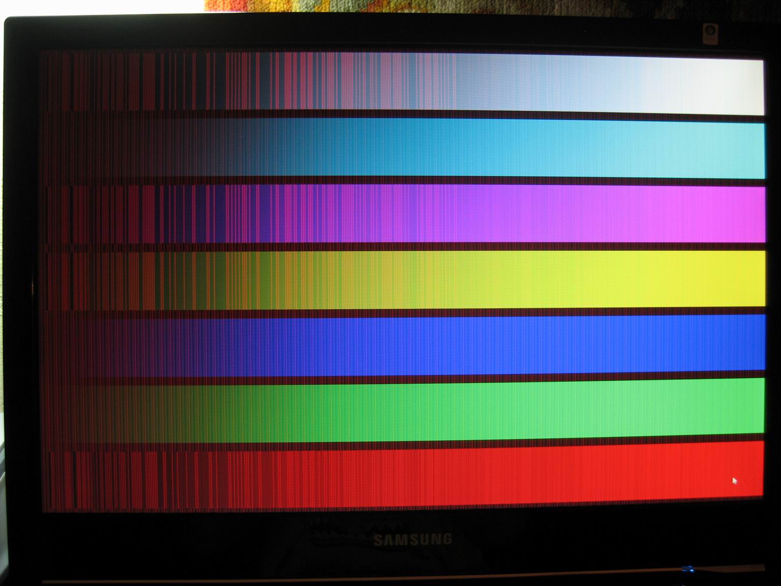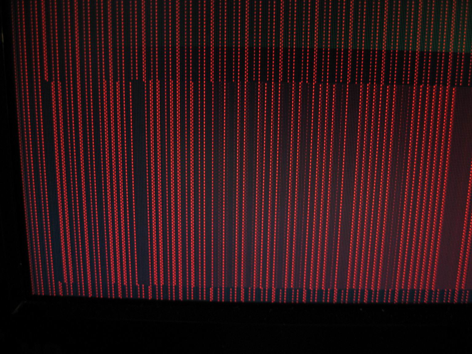 Подскажите, пожалуйста, что может быть причиной периодически (в 5-ти из 10 включений монитора) появляющихся вертикальных полосок красного цвета (см. фото) на экране монитора (SAMSUNG SyncMaster 225 MW).