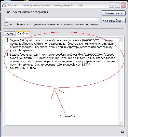 Профиль | Отправить PM | Цитировать Задача 'pop.gmail.com - получение' сообщила об ошибке (0x80042108) : 'Outlook не удается подключиться к серверу входящей почты (POP3). Если вы продолжаете получать это сообщение, обратитесь к администратору сервера или поставщику услуг Интернета.'
