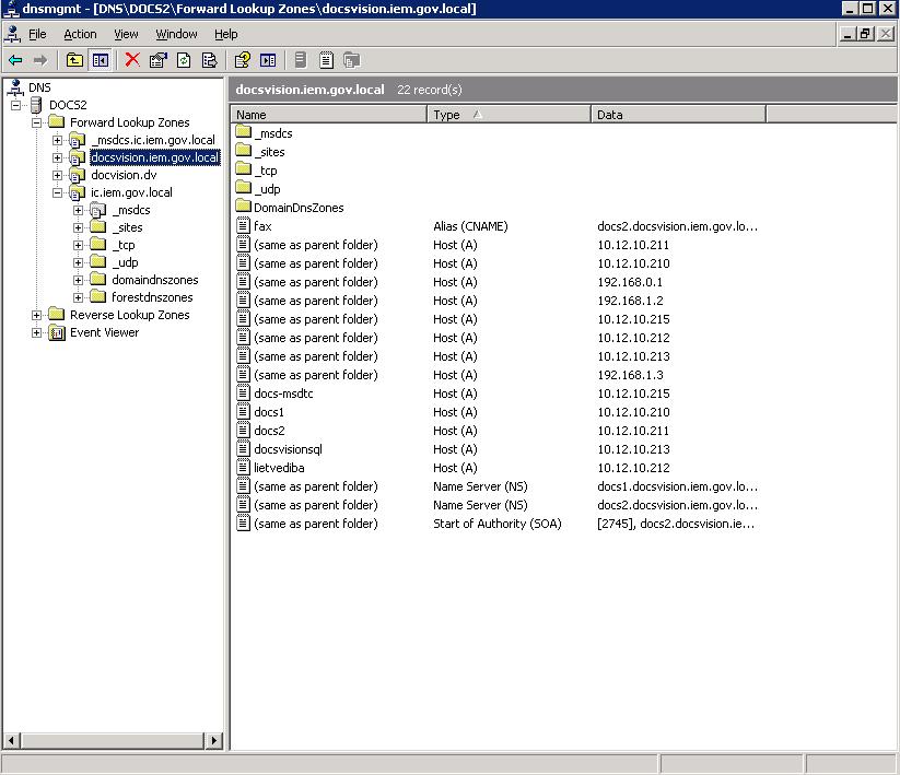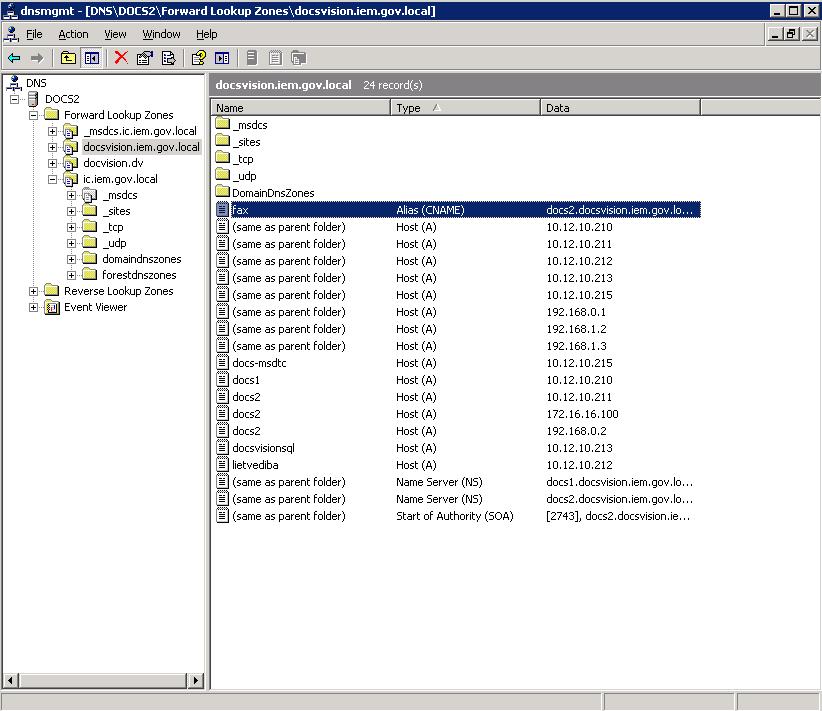 а без алиаса на докс2.доксвижен.что-то-там есть доступ? у вас 3 (!) разные записи типа А указывают на докс2. пинги покажите на докс 2 и факс. а по первому скрину - мне не нравится FQDN. |