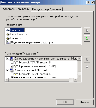 Покажите скрин Панель управления->Сетевые подключения->пункт меню Дополнительно->Дополнительные параметры. |