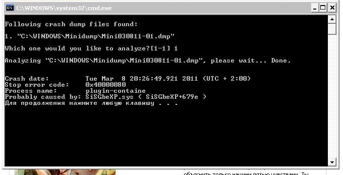 У меня Виндовс Xp SP 3 и конечно же, пиратский. Система по своему желанию вылетает в синий экран Ошибка вылетает на двух сборках виндовса. Помогите! По журналу событий выдает это: Тип события: Уведомление Источник события: Tcpip Категория события: Отсутствует Код события: 4201 Дата: 08.03.2011 Время: 20:26:34 Пользователь: Н/Д Компьютер: Описание: Система обнаружила, что сетевой адаптер SiS191...Controller - Минипорт планировщика пакетов был подключен к сети, и инициировала нормальную работу через этот сетевой адаптер. Данные: 0000: 00 00 00 00 02 00 50 00 ......P. 0008: 00 00 00 00 69 10 00 40 ....i..@ 0010: 02 00 00 00 00 00 00 00 ........ 0018: 00 00 00 00 00 00 00 00 ........ 0020: 00 00 00 00 00 00 00 00 ........ И на счет дампа памяти: Тип события: Уведомление Источник события: Save Dump Категория события: Отсутствует Код события: 1001 Дата: 08.03.2011 Время: 20:30:13 Пользователь: Н/Д Компьютер: Описание: Компьютер был перезагружен после критической ошибки: 0x40000080 (0x8a0013f0, 0x89522a80, 0xf78aef2c, 0x00000001). Копия памяти сохранена: C:\WINDOWS\Minidump\Mini030811-01.dmp. Я в компах не очень разбираюсь, но буду очень признательна за помощь. |