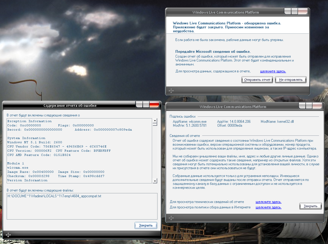 Проблема с почтой Windows Live. Пользуюсь ей уже 3 года ни когда проблем не было, а тут...... ну достала обнаружена ошибка, обнаружена ошибка и так постоянно. Файл прикрепил к теме. Заранее СПС. |