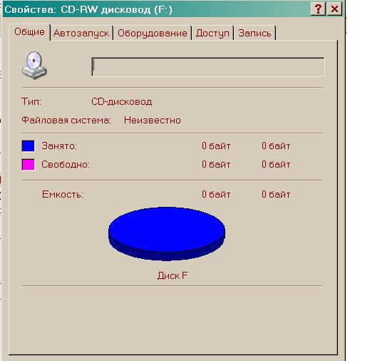 - по "Свойства" - когда вставлен заведомо рабочий CD - всё бледное и объём не показывает.