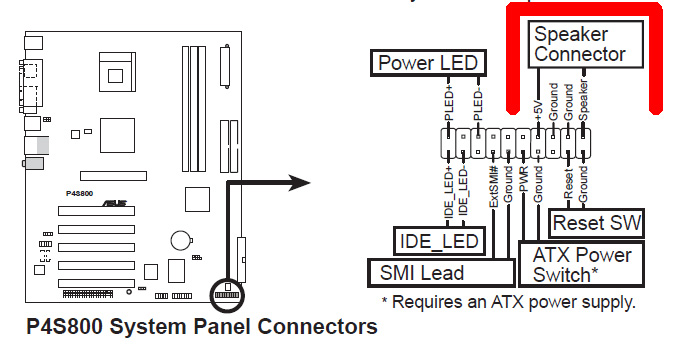 а на счет спикера, подключи его цветным провод в + а черным в - и вынь процессор, или все вынь.