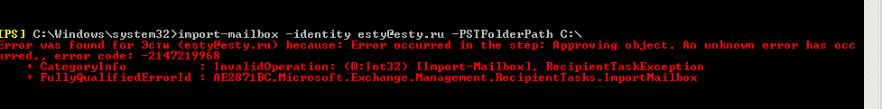 Профиль | Отправить PM | Цитировать [q=Oleg Krylov]А в какой сервер грузите? В 2010? Так он же не работает с ExMerge. Там все хуже. Надо дать пользователю права на экспорт\импорт через RBAC, и выполнить Import-Mailbox указав аргументом путь к PST. [post=1417492]»[/pos