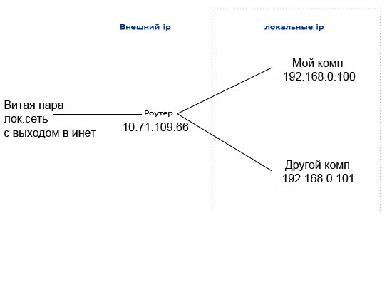 я подключен к БКС - это провайдер у которого сеть по городу с выходом в интернет! Витая пара подключена в роутер d-link dir-100 от него на два компа. Все работает интернет пашет компы в сети провайдера я пингую все хорошо. Но если я создаю сервер никто его не видит, а айпишник роутера пингуется постараюсь все это нарисовать Короче как сделать чтоб я создал сервак по игре допустим в Call of duty 4 а человек с БКС ко мне подключился |