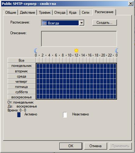 Профиль | Отправить PM | Цитировать Отключите правило публикации и попробуйте соединиться с сервером, посмотрите будет ли регистрироваться входящий запрос на порт 25. Посмотри еще раз Каспера может он все таки как то блокирует трафик. Ну и попробуйте на закладке "Куда" свойств правила публикации выставить "Запросы приходят от Forefront TMG".