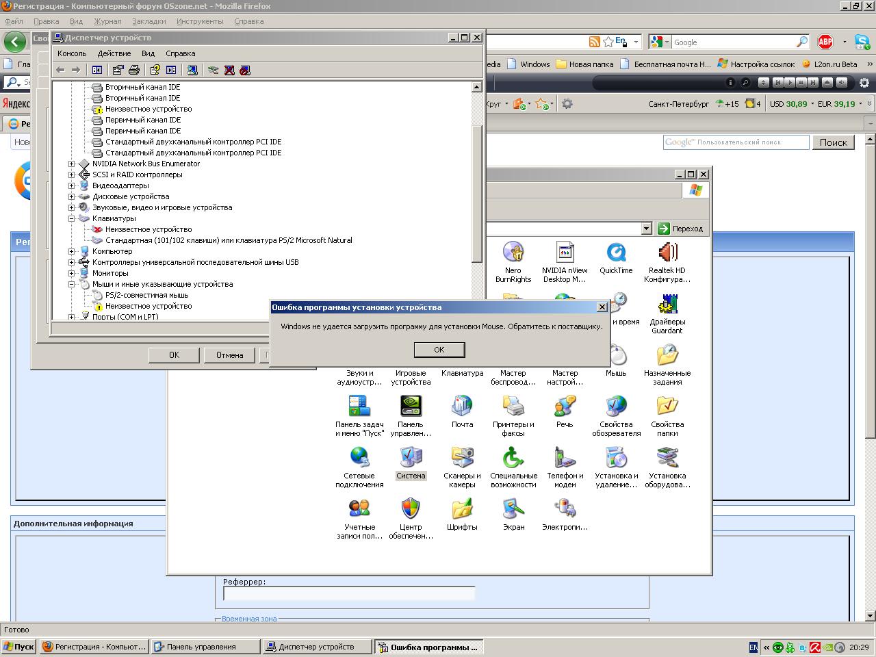 Попытки удалить неопознанное устройство так же не проходят. На другом компьютере мышь работает сразу по подключении ее туда ( не требуя драйверов) На обоих компьютерах стоит windows xp |