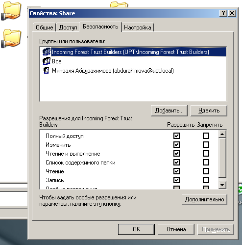 Профиль | Отправить PM | Цитировать Еще скрин покажите с вкладки Доступ->Разрещения.