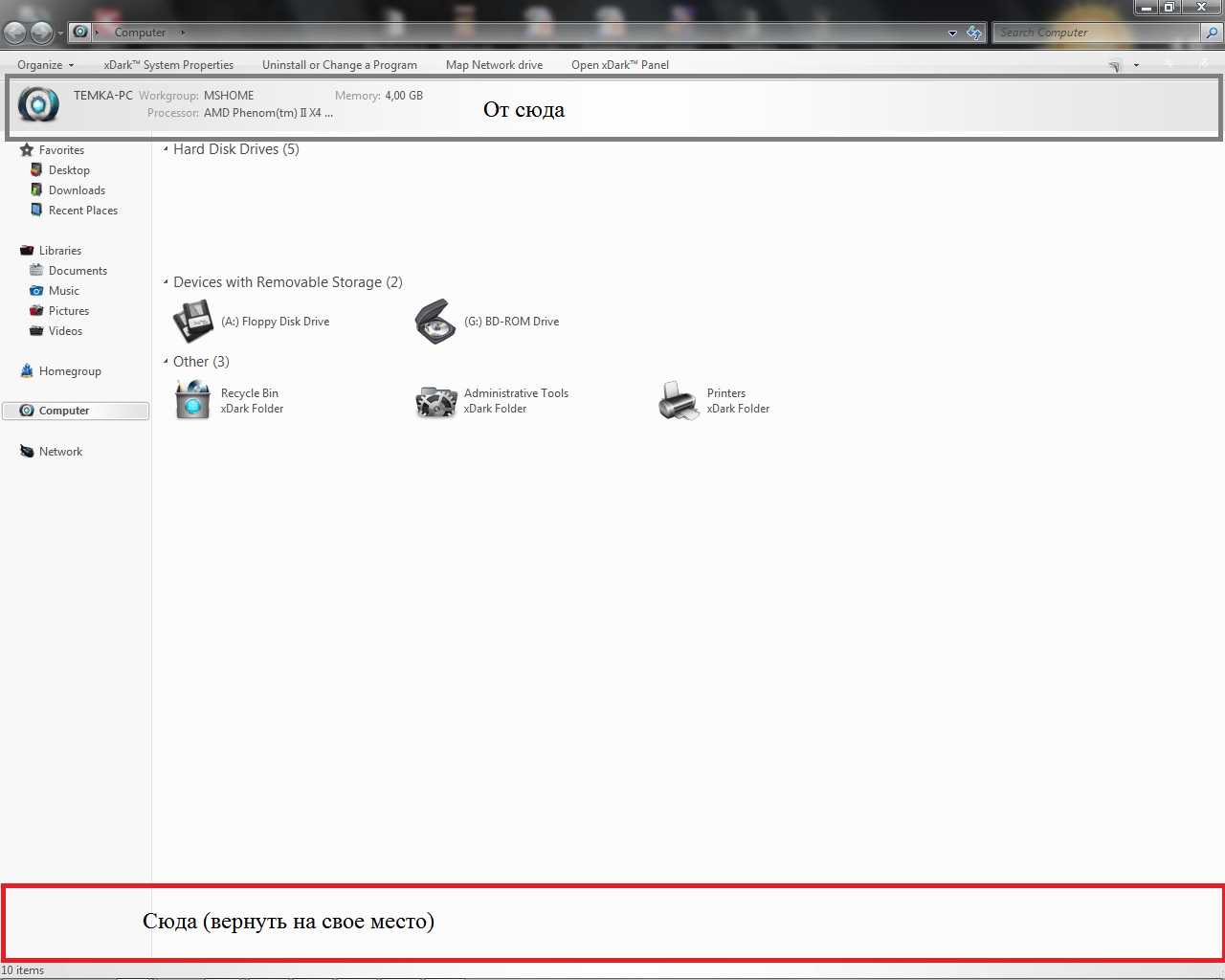 Темы и Стили - Как переместить панель