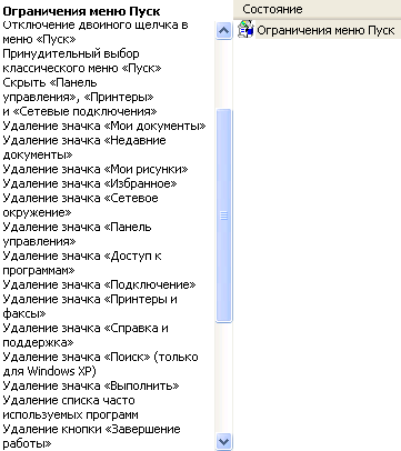 А точнее административный шаблон из нее: SCTSettings.adm (в аттаче), который помимо прочего дает возможность ограничить или убрать все из меню Пуск, включая Принтеры и факсы (аттач картинкой) Думаю, что не нужно объяснять как добавить adm шаблон ) Я не стал проверять будет ли работать шаблон без установленного SteadyState - оставляю это вам ![]() Прямая ссылка на SteadyState: http://download.microsoft.com/downlo...teadyState.msi |