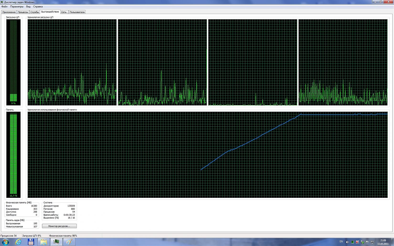 Красотищща какая! См. explorer.exe на системе с 16 ГБ ОЗУ во время проверки жесткого диска на ошибки (банальный check disk!).Это IE9 RC. И самое главное, что обход BSOD сделали идеально! Не вылетает никогда теперь. Предлагает вместо этого закрыть все процессы, включая самого себя, проводник Windows всмысле. Аппетиты нормальными назвать сложно. Проверял IDE винчестер Samsung SP2014N. Конфиг машины: Gigabyte GA-MA790XT-UD4P, Phenom II 955BE, 4x4Гб DDR3-1333 Hynix, Radeon 5550 (ASUS, Silent). Система (ОС) стоит на Seagate ST9500325AS (2,5" HDD, SATA2). Может к релизу подправят? |
