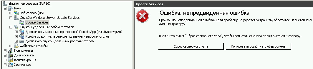 Установил чистый W2k8R2 SP1 и все обновления Потом начал добавлять роль WSUS вроде как дело пошло что то там качалось и после закачки вылетает банальная ошибка и в логах тольком ничего (как выше) Решилось все скачкой дистрибутива с сайта MS и установкой по старинке :-D P.s делал все это ради эксперимента на виртуалке и может мне просто повезло .... |