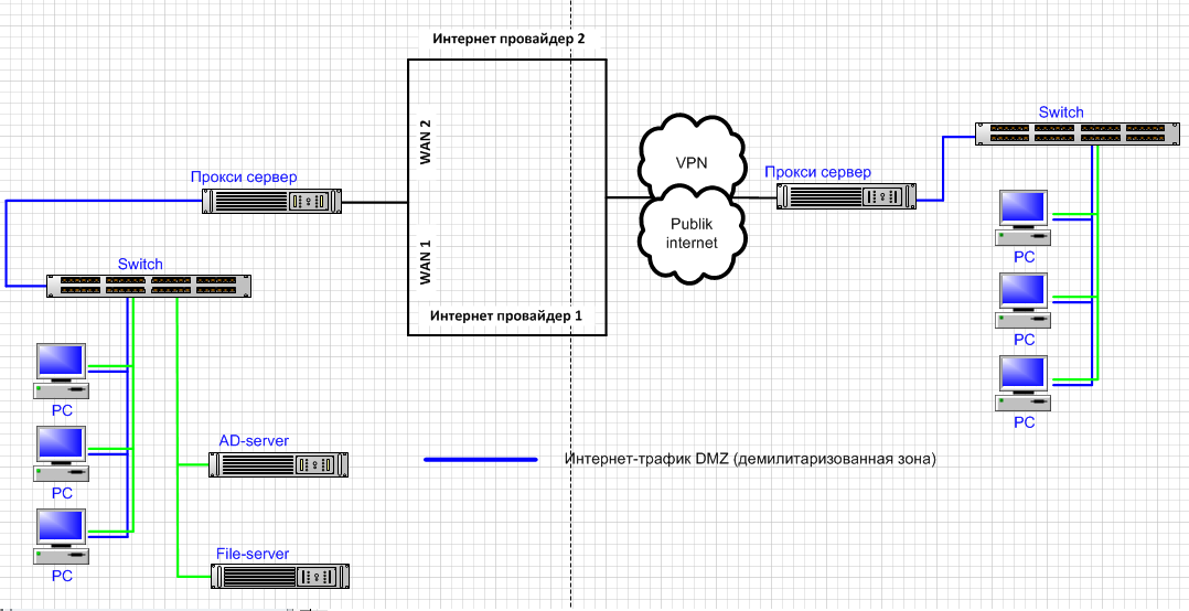 Профиль | Отправить PM | Цитировать Схему прикладываю, упростил убрал все не важное (дополнительные свичи, нас сервера и пр.)