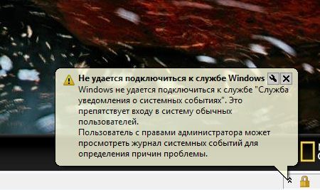 Загрузка - Не удается подключиться к службе "Служба уведомления о системных событиях" Windows