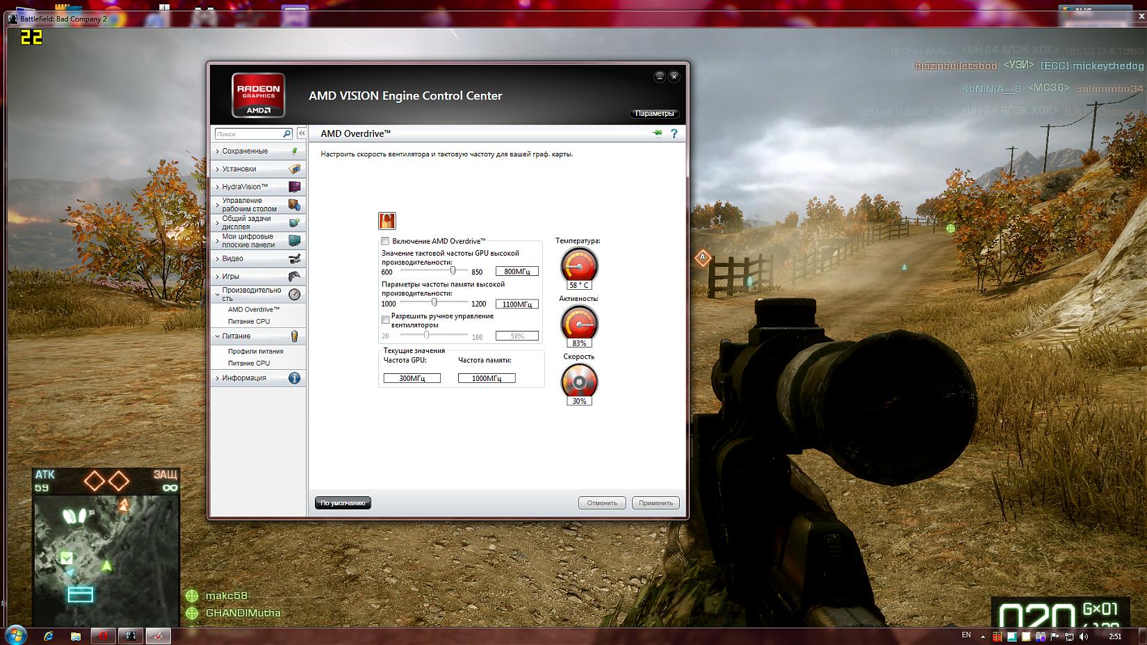 maksus58, запусти игру в окне а потом сделай скрин ССС на вкладке ATI Overdrive