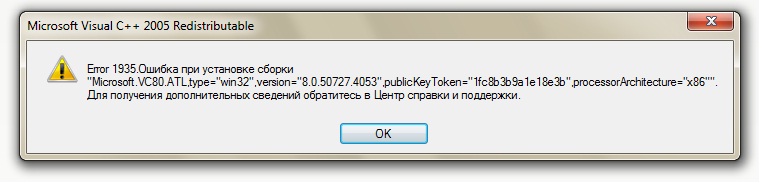 | Ошибка - ошибка 1935. ошибка при установке сборки | sanna | Microsoft Windows 2000/XP | 2 | 09-10-2009 13:09 | |
