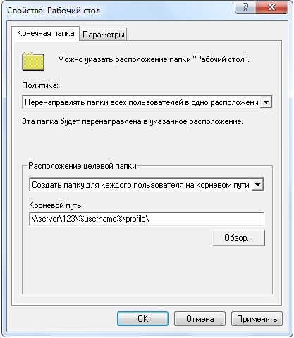 Нужно, чтобы была папка пользователя допустим Pupkin\profile\desktop а он по умолчанию делает папки сразу в дериктории пользователя Pupkin\desktop в 2003 можно было написать переменную %username%, тут такое не получается! |