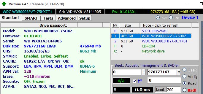 Только имейте в виду, что WD5000BPVT --- это AF хард. У него Sector size = 4K, 512e.