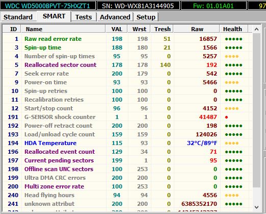 вышел из строя диск: WDC WD5000BPVT-75HXZT1. »