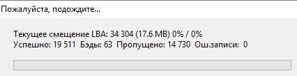 после первых сбоев удалось просканировать и сохранить 70 Гб из 150Гб.
