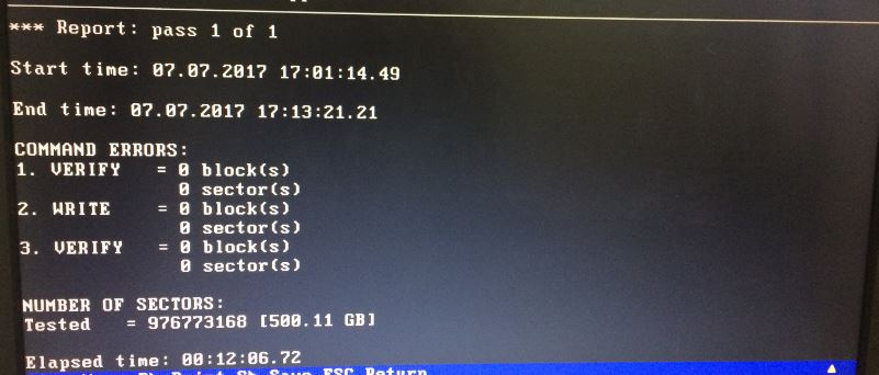 образ img загружается, выполняю всё по статье, быстро проходит тест(минут 20-30), но плохих секторов не находит.