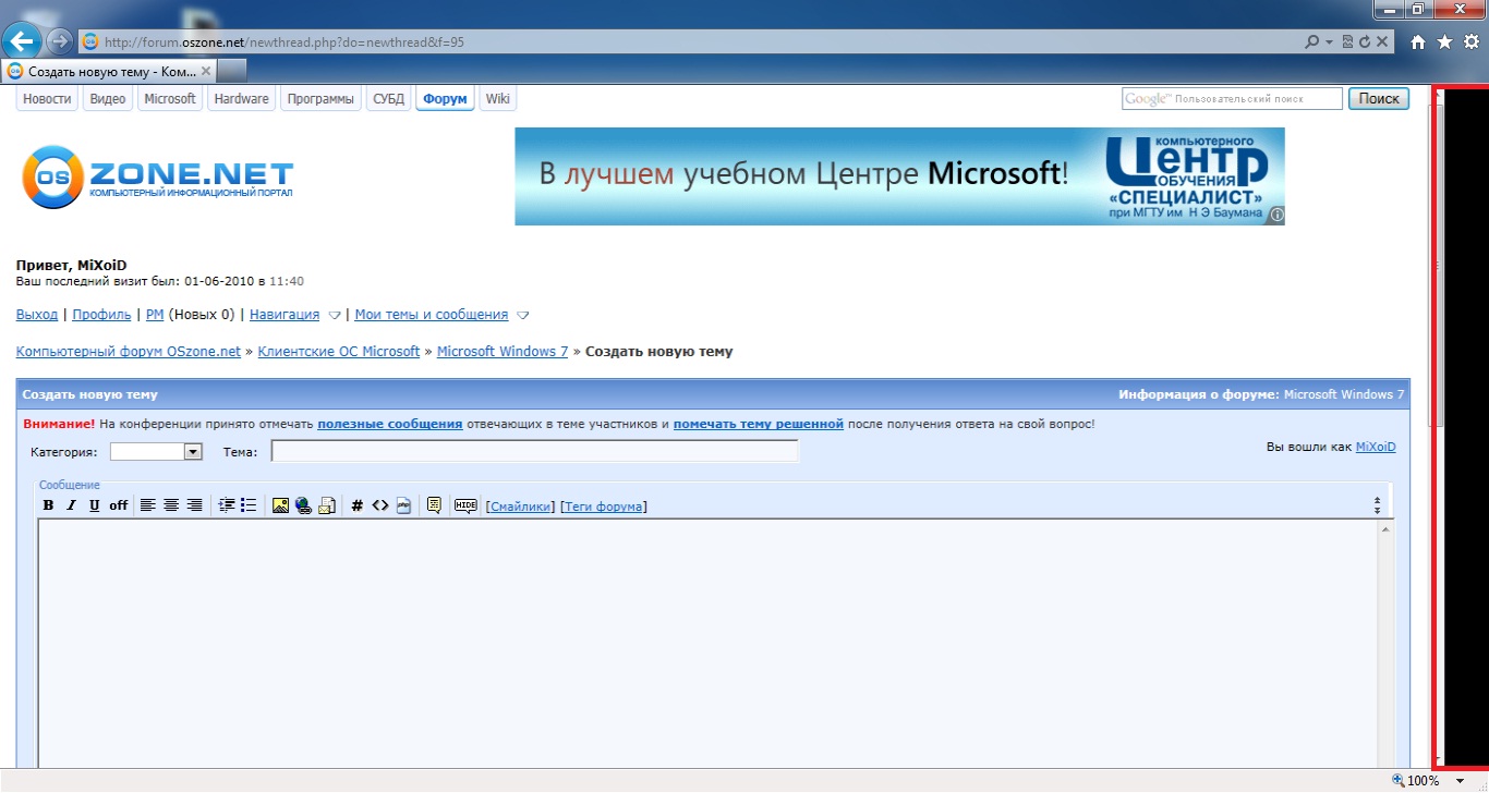| Компьютерный форум OSzone.net » Клиентские ОС Microsoft » Microsoft Windows 7 » Интернет - [решено] ie9 черная полоса |