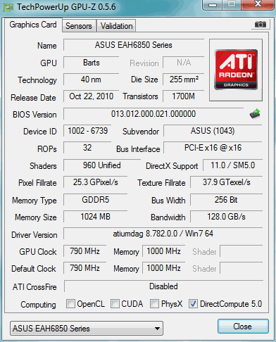 Здравствуйте! Вопрос состоит в следующем, купил видеокарту Asus Radeon HD 6850 (EAH6850 DC/2DIS/1GD5/V2), если я запускаю игру, например COD MW3, она начинает подтормаживать, видеокарта должна тянуть COD MW3 на максималках свободно, а почему то тормозит. Обновил драйвер на самую последнюю версию, начал лазить в настройках драйвера и обнаружил что частота памяти и ядра видеокарты намного меньше чем должна быть. В драйвере текущие значения частот: GPU 100 МГц, память - 150 Мгц. Посмотрел в GPU-z, там другие частоты, скрин GPU-z приложил к теме.