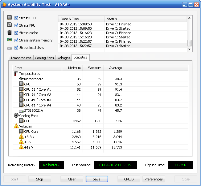 Нашел подобную тему, сказали, что проблема БП. Сделал проверку в евересте с помощью теста стабильности системы. Видно, что напруга недостаёт. Прикрепляю скрин.