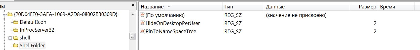 Профиль | Отправить PM | Цитировать Интеграл, поищите строку {20D04FE0-3AEA-1069-A2D8-08002B30309D} в реестре.