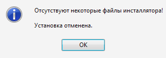 MsgBox('Отсутсвуют файлы установки!' + #13#10 + 'Установка прекращена', mbError, mb_Ok);