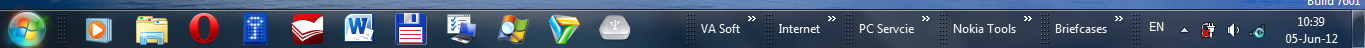 Господа, я хотел немного усовершенствовать панель задач, добавив дополнительные панели (Toolbars). Я их добавляю, ставлю свои настройки, типа полжение иконок и т.д. (#2). НО После перезагрузки они сбрасываются как видно на картинке #1, и это наблюдается не всегда, это непредсказуемо. Иногда просто остается. Как сделать так, чтобы настройки не сбивались? _ Ноутбук Toshiba Satellite L735-11D CPU: Intel Core i5-2410M @ 2.30GHz (2.70GHz TurboBoost) RAM: Samsung M471B5273CH0-CH9, DDR3-1333 (667 MHz), 4096MB HDD: Hitachi HTS547564A9E384 (640 GB, 5400 RPM, SATA-II) VIDEO: NVIDIA GeForce 315M (1024 MB) OS: MS Windows 7 SP1 HomePremium x64 |