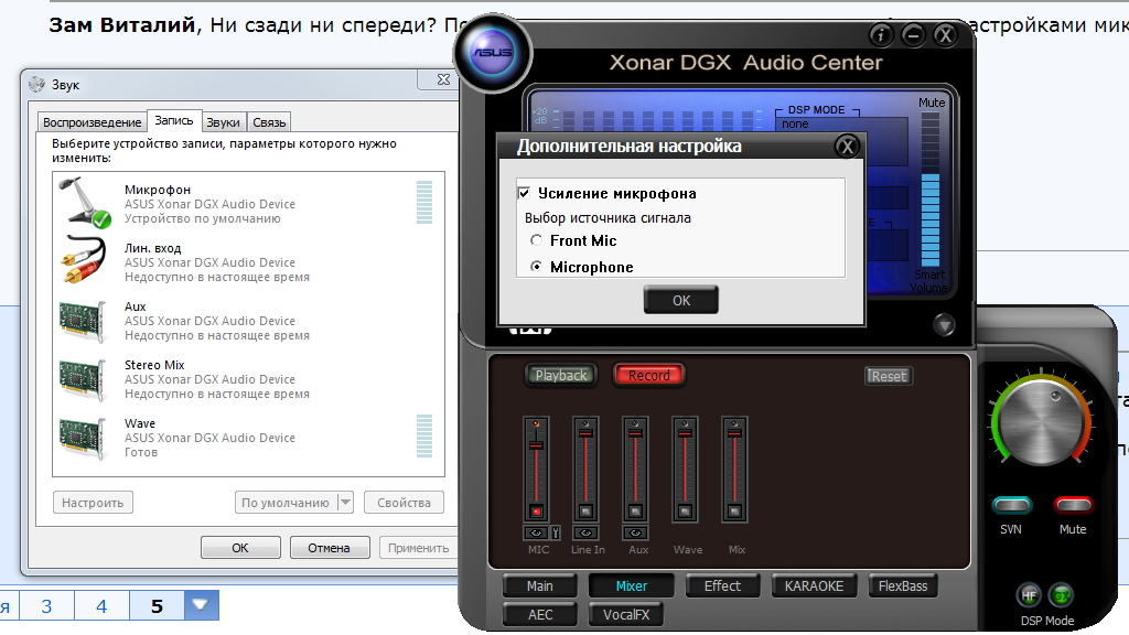 Зам Виталий, Ни сзади ни спереди? Покажите скриншоты панели управления Асус с настройками микрофона