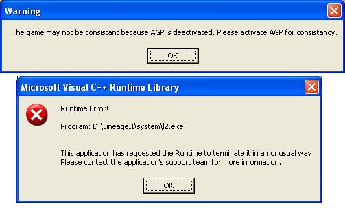 Я выложу, на всякий случай, скрины моих "проблем" (как их еще назвать, не знаю): Сначала вылазит окошко с требованием о включении AGP. Затем, когда нажимаю ОК на вышеупомянутом окошке, вылазит такая ошибка (прилагаю скрин). |
