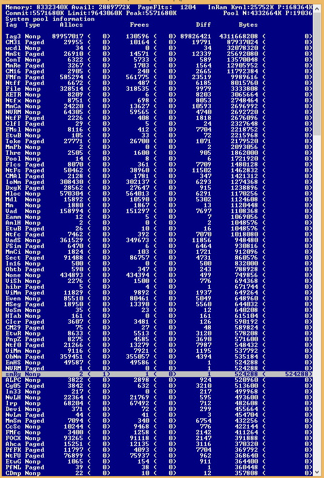1. При появлении проблемы запустите RAMMap и сделайте скриншот вкладки Use Counts. 2. Если вы видите высокoe значениe NonPaged Pool:
