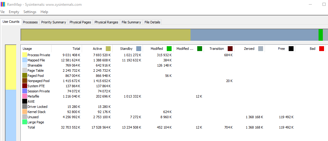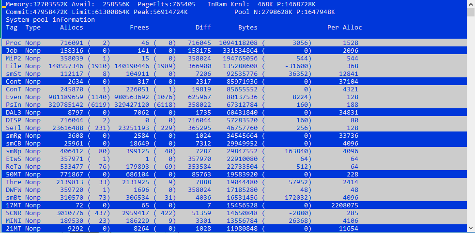 1. При появлении проблемы запустите RAMMap и сделайте скриншот вкладки Use Counts. 2. Если вы видите высокoe значениe NonPaged Pool: