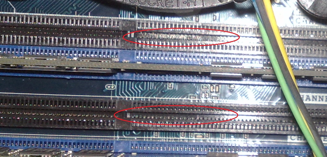 Сначала я протестировал каждую планку по отдельности. Ошибки не обнаружились, после этого я поставил 2 планки, и тест прошел без ошибок, причем планки я поставил в Channel A DIMM 1, вторую в Channel B DIMM 1, в которых у меня вообще не включился компьютер в начале, я так думаю, что может контакт был плохой, так как даже после защелкивания я проверио как они стоят, и одной планки был плохой контакт. Возможно такое было, когда я пытался разархивировать, хотя почему комп определял кол-во памяти правильно, я не знаю. Кстати, стоит менять что-то в БИОСЕ, чтобы улучшить работу? и разъем, где видна какая-то штука, я посмотрел, и там ничего нет, это просто что-то на фото |