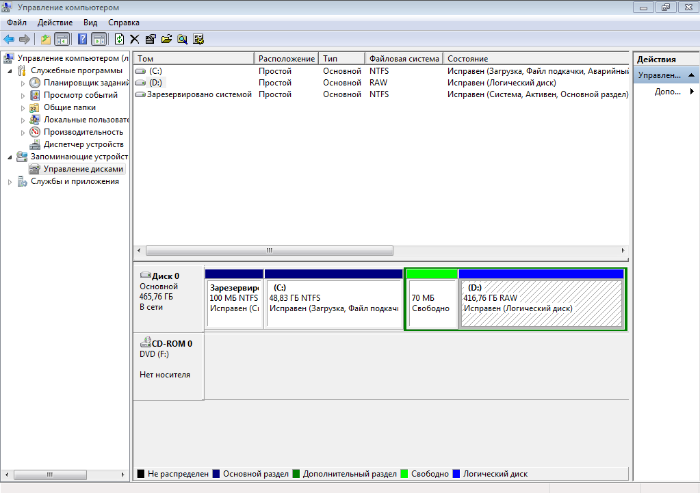 Средствами управления дисками "сжал" том С, но не смог расширить том D.