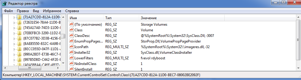 2.Выложите значения параметров LowerFilters и UpperFilters (если есть) в разделах реестра: HKEY_LOCAL_MACHINE\SYSTEM\CurrentControlSet\Control\Class\{36FC9E60-C465-11CF-8056-444553540000}