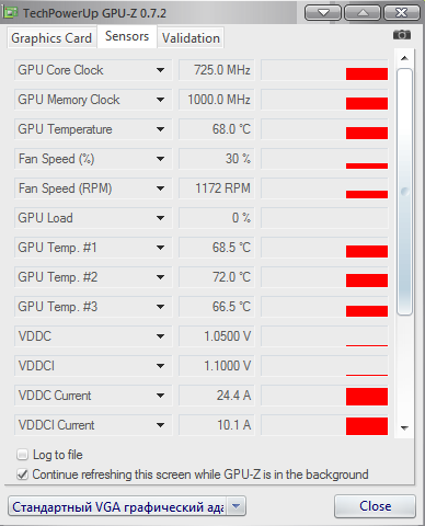 На старом железе сдохла видеокарта (года 3-4 назад) купил - поставил 5970 (Весна 2010 + - ) . Через год с лишним начали вылазить артефакты. (по мелочи , не сильно и редко) Чуть больше года назад собрал новое железо и воткнул эту видюху. Проблемы с артефактами постепенно усугублялись, часто бывали падения экрана с последующим выведением сообщения - драйвер перестал отвечать и был остановлен. Артефакты были как на рабочем столе и браузерах, так и в 3D приложениях. Причём иногда месяц вообще никаких проблем, потом опять... Четыре дня назад упала винда (сейчас я немного сомневаюсь ,что она упала - теоретически она могла просто не прогружаться с драйвером и из-за драйвера). (логотип загрузки винды, потом чёрный экран, и, через какое-то время, уход перезагрузку.) Я поставил новою винду - всё стало замечательно (и без артефактов) , пока не дошло дело до драйвера... При перезагрузке винда не прогружается, потом через средство восстановления откатывается на вариант без дров. В таком состоянии можно работать, но игры не запускаюся. В итоге вызванный мастер за 2 дня ходок чуть всё в конец не угробил - винда вообще больше не грузилась, и не устанавливалась извне. Ubuntu с флешки тоже запустить не выходило. Кое-как я довёл всё обратно до состояния чистой винды без дров. И сейчас нахожусь именно в этом положении. Видеокарта работает в варианте "Стандартный VGA графический адаптер...." И GPU-Z даёт только этот вариант выбора видеокарты, хотя обычно на выбор 2 radeon 5970 (ибо два процессора в видюхе) - скриншоты стандартного VGA в прикреплённых... Сегодня я как-то поймал момент с 2-мя вариантами 5970... Грубо говоря первый процессор был по параметрам как стандартный VGA. а 2-й яб сказал что лежал, отошёл или ещё что. но температуры там рисовались пяти-шестизначные, pixel/texture filtrate левые числа 0/ -1 . в общем - бред какой-то. То ли это от того что драйвер толком не поставлен, али что ещё... На сколько возможны такие дефолтные значения из за сбоя / отсутсвия програмно-драйверного обеспечения? Или это однозначно говорит о механической поломке? Нюансы и особенности моей ситуации: -Встроенное в i5 видео ядро не пашет походу в принципе. (При переключении монитора с видюхи на мать они друг друга не видят и не могут встретиться.) -кому-то такое помогало. -Видюха прилично греется (при том что ей сейчас не с чего греться). (Объективно от нагрузок. ). по крайне мере держать на ней руку больше 10 сек невозможно => ~65-70 C + Но мастер-ломастер её забирал и у него она работала замечательно и ,как было сказано, не грелась. И артефактов не было. Вроде как какой-то драйвер он ставил, но какой как говорится? НУ и игры он не запускал - только фотошоп опробовал (там всё без проблем). Поэтому впорядке ли видюха или нет я до сих пор на 100% не уверен. -Windows было 2 сборки одна может и кривоватая, но на сборке 7600 (можно сказать классика) всё без изменений... -На мать и отваливание мостов гнать тоже смысла нет. Стараниями мастера у меня выходы usb накрылись, так что я немного психанул и уже успел купить и поставить на замену z77-ds3h (та при которой поломка случилась) на ту что сейчас z77-d3h... И я был уверен что по крайне мере с заменой матери у меня начнёт пахать видео ядро 5-го, но нет... С проц. что-ли проблемы? -БП - год-полтора. Маловероятно чтоб от него такой гемор... Ну вероятней, в итоге, наверное, видюха... Есть ли у кого методы и предложения решения данной ситуции. Ибо я