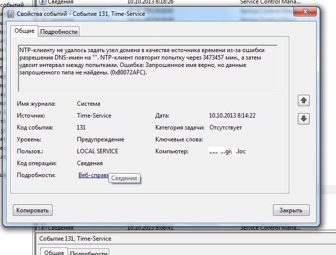 | Компьютерный форум OSzone.net » Сфера Microsoft » Устранение критических ошибок Windows » EventID - Код:131 Источник Time-Service Код:1129, источник: Group policy |