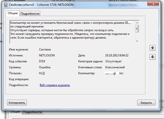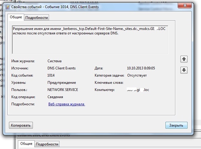 EventID - Код:131 Источник Time-Service Код:1129, источник: Group policy
