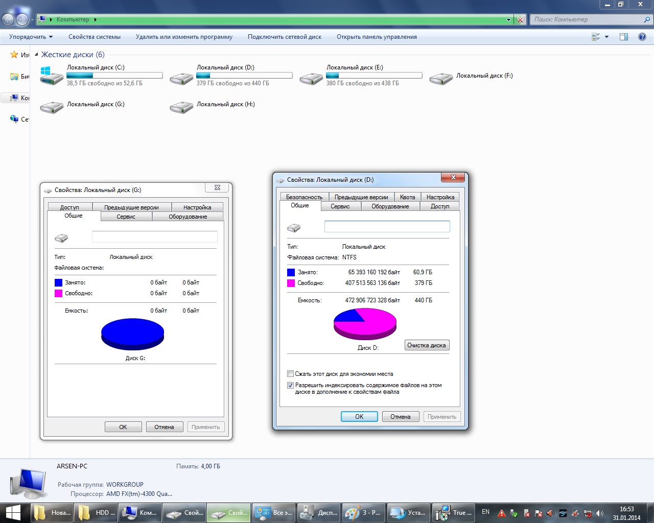 Victoria на запрос СМАРТ пишет Error reading SMART. Может это быть потому, что диск подключен через USB карман? (подключая через сата оно его либо не видит, либо виндовс перезагружается) Запустил тест. Показывает очень много секторов с таймаутом 2000-4000 мс. Первый гиг диска сканило где-то час с копейками. Потом пошли секторы с меньшини задержками (500-2000 в основном). В общем, в этом гиге, что оно успело просканить, половина секторов нормальная (задержка до 5 мс), до 15% - с задержкой в среднем 3000 мс (с десяток секторов достигали 8000), остальные 35% - до 20 мс. 3 сектора - с ошибкой (Block Error: ABRT). Дальше - в том же духе (то же соотношение). Не дотерпел до конца, просканил всего 2 гб. Как-то не тянуло ждать несклько недель, пока оно завершит скан. При попытке DMDE просканить разделы оно их не опознает, показывает 1 тб свободного места. Показывает какие-то копии остальных разделов (посмотрите скрин). Проблема актуальна до сих пор. Нужно вытянуть инфу с 730-гигового раздела. Но чуда, как в субботу, пока не случилось. Не знаю, поможет ли восстановить таблицу разделов и файловую систему. Но как это сделать в данном случае, и стоит ли вообще? Что это за проблема? http://imageshack.com/a/img585/2681/r91t.jpg http://imageshack.com/a/img31/1847/ot8u.jpg http://imageshack.com/a/img577/6145/4mj1.png http://imageshack.com/a/img837/9707/bmyd.jpg http://imageshack.com/a/img545/4671/rlui.png В управлении дисками показано, что винт исправен. http://imageshack.com/a/img829/5759/md20.jpg Первые 100 секторов (с помощью DMDE): http://rghost.ru/52170424 Попробую снять смарт HDDScan 3.3, завтра-послезавтра отпишусь. |