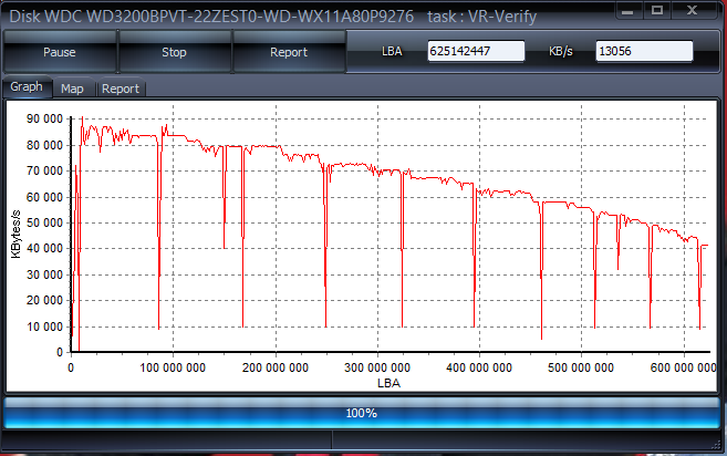 Профиль | Отправить PM | Цитировать очень нехорошие показатели по скану. Хорошо бы проверить еще в victoria и не под виндой. По графику тоже плоховато выглядит, особенно в начале, где как раз и сидит таблица, что возможно и предшествовало слету области.