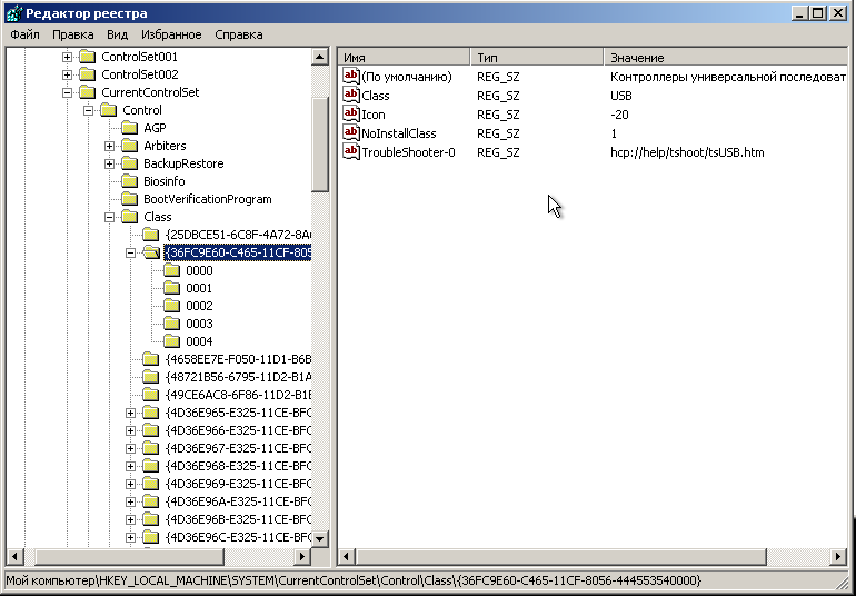 HKEY_LOCAL_MACHINE\SYSTEM\CurrentControlSet\Control\Class\{36FC9E60-C465-11CF-8056-444553540000} нет ли параметров LowerFilters и/или UpperFilters. |