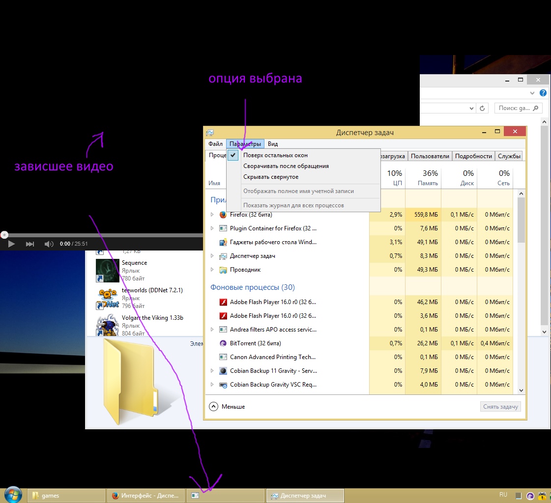 Интерфейс - Диспетчер задач не сохраняет "поверх остальных окон"